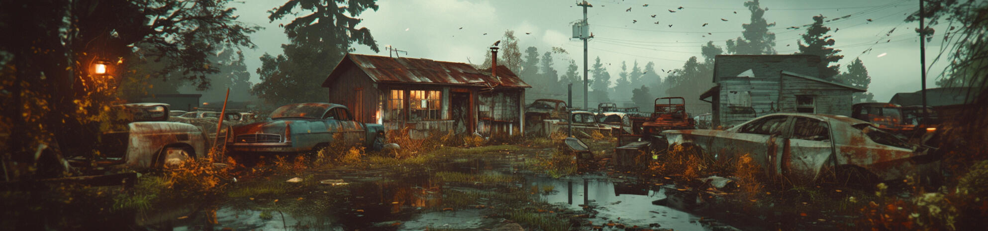 A graveyard for rusted-out trucks, twisted metal, and dreams that never made it out of Gator Creek. Johnson’s Salvage & Scrap sits on the outskirts of town, past the old paper mill, where the dirt road turns to gravel and the air smells like oil, sweat, and burning metal. It ain’t much to look at—just a chain-link fence patched with scrap tin, a beat-up trailer serving as the office, and a sprawling junkyard full of busted cars, broken appliances, and the kind of junk that might be worthless or valuable, depending on who’s asking.Mack Johnson runs the place and he’s been here longer than anyone can remember, paying cash for scrap, fixing up the occasional wreck, and keeping an eye on the town’s more desperate folks who come looking for work. His crew is a mix of ex-cons, high school dropouts, and men who just never found anything better. Work here is hard, dirty, and pays just enough to keep folks coming back.Most of the cars sitting in the yard have stories—some good, some bad, some best left alone. A few still got bullet holes in ‘em, and Mack don’t ask questions when people pay extra to have certain vehicles stripped down fast. The sheriff pretends not to notice, so long as nothing obvious turns up.At night, the place takes on a different feel. The wind rattles through rusted metal, shadows stretch long between the stacks of old cars, and the swamp beyond the fence hums with the sound of unseen creatures. Folks say if you listen real close, you can hear voices in the dark—maybe just the wind, maybe something else. Either way, nobody sticks around after sundown unless they have to.